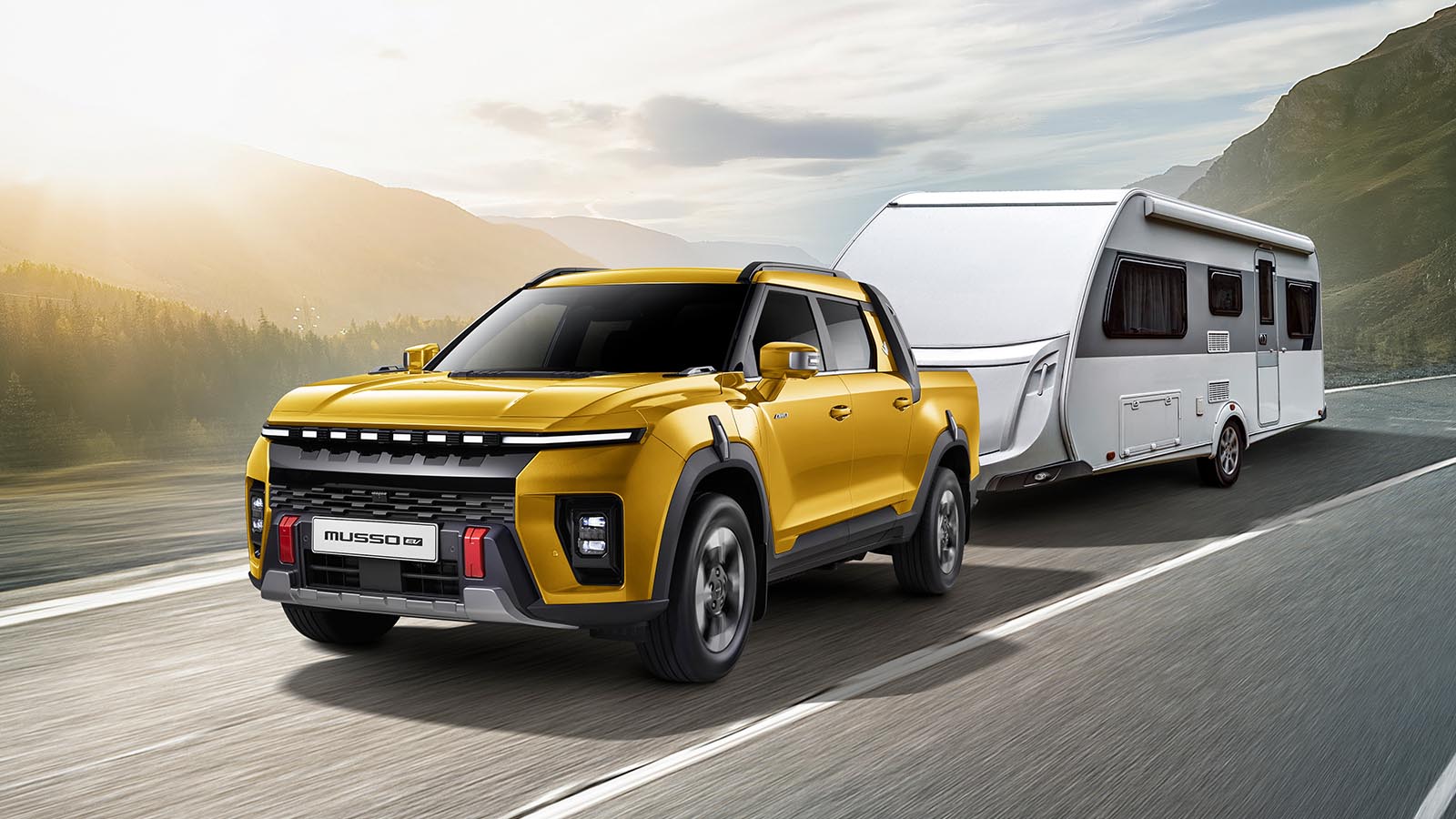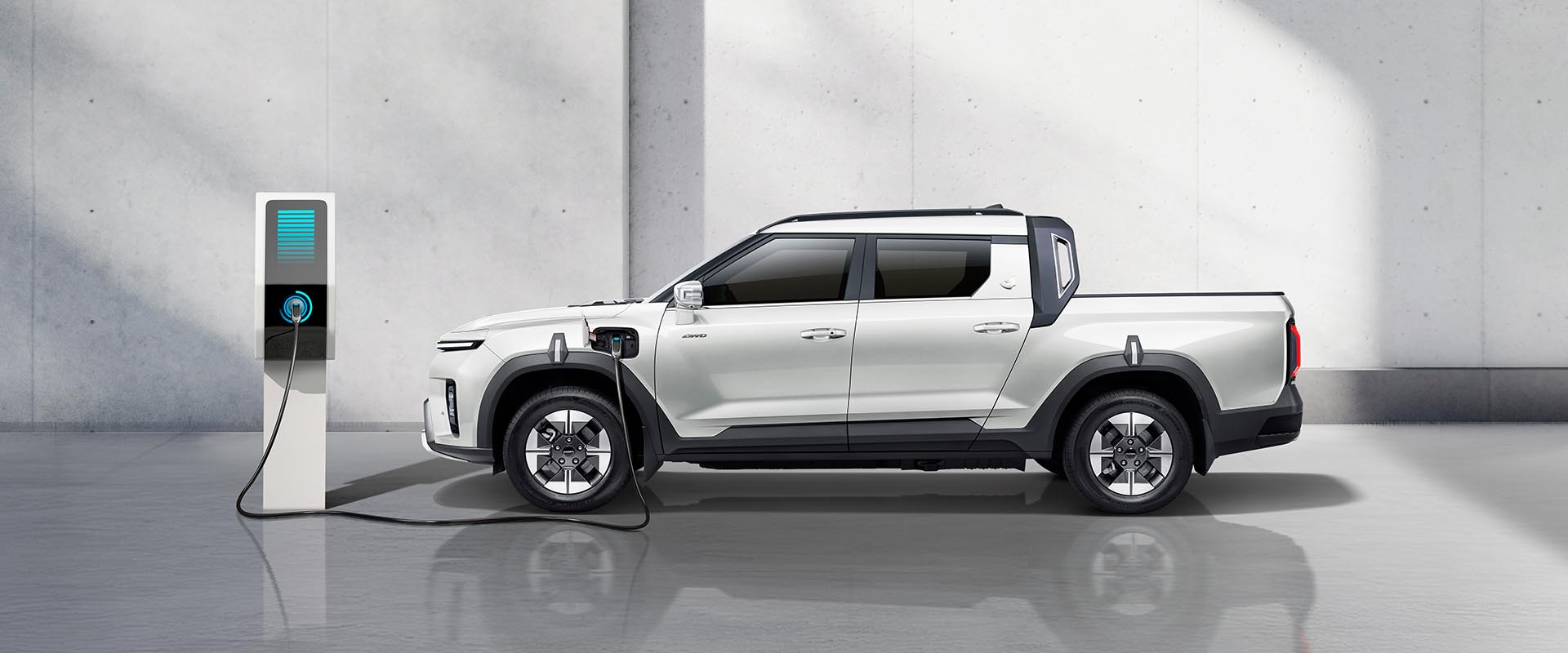 Tyylikäs ja erottuva design yhdistettynä kattaviin ominaisuuksiin tarjoaa poikkeuksellista vastinetta rahalle, joka ylittää varmasti kaikki odotukset. KGM:n täyssähköiseen MUSSO EV:hen on käytetty kaikki yli 50 vuoden aikana kerätty tietotaito ja kokemus pick-up autoista. Nelivetoisen MUSSO EV:n molemmat sähkömoottorit tuottavat 207 hv tehoa ja 339 Nm vääntöä. 80,6 kWh kapasiteetin akun ansiosta toimintamatka on 379 km ja akku latautuu 10-80% 36 minuutissa. Mielenrauhaa tuo markkinoiden paras – 10 vuoden tai 1 000 000 km akkutakuu.