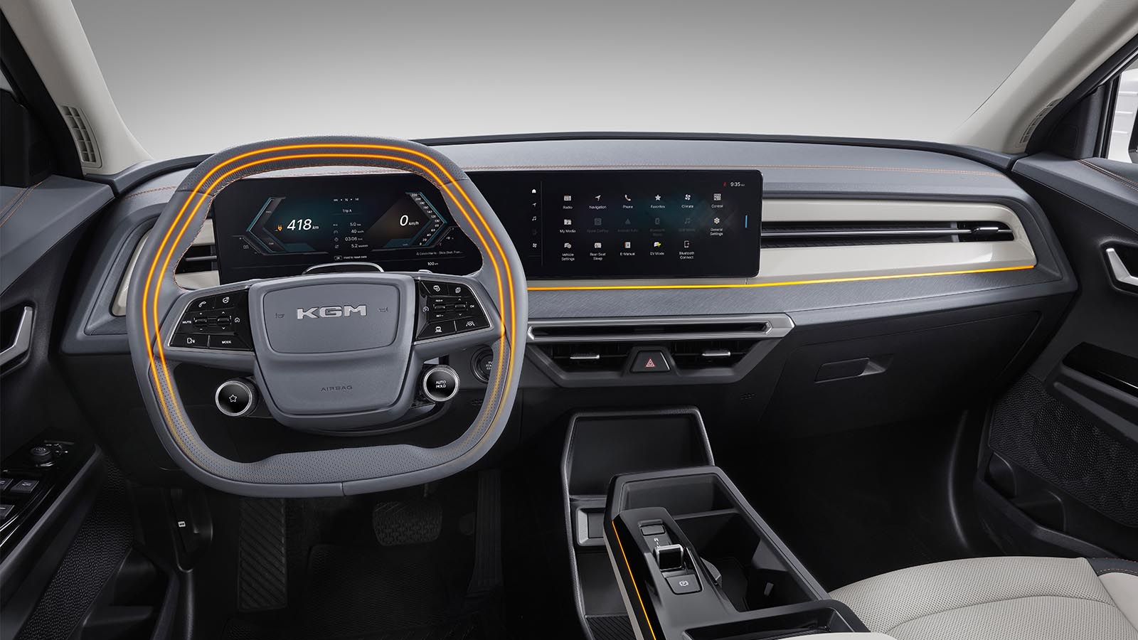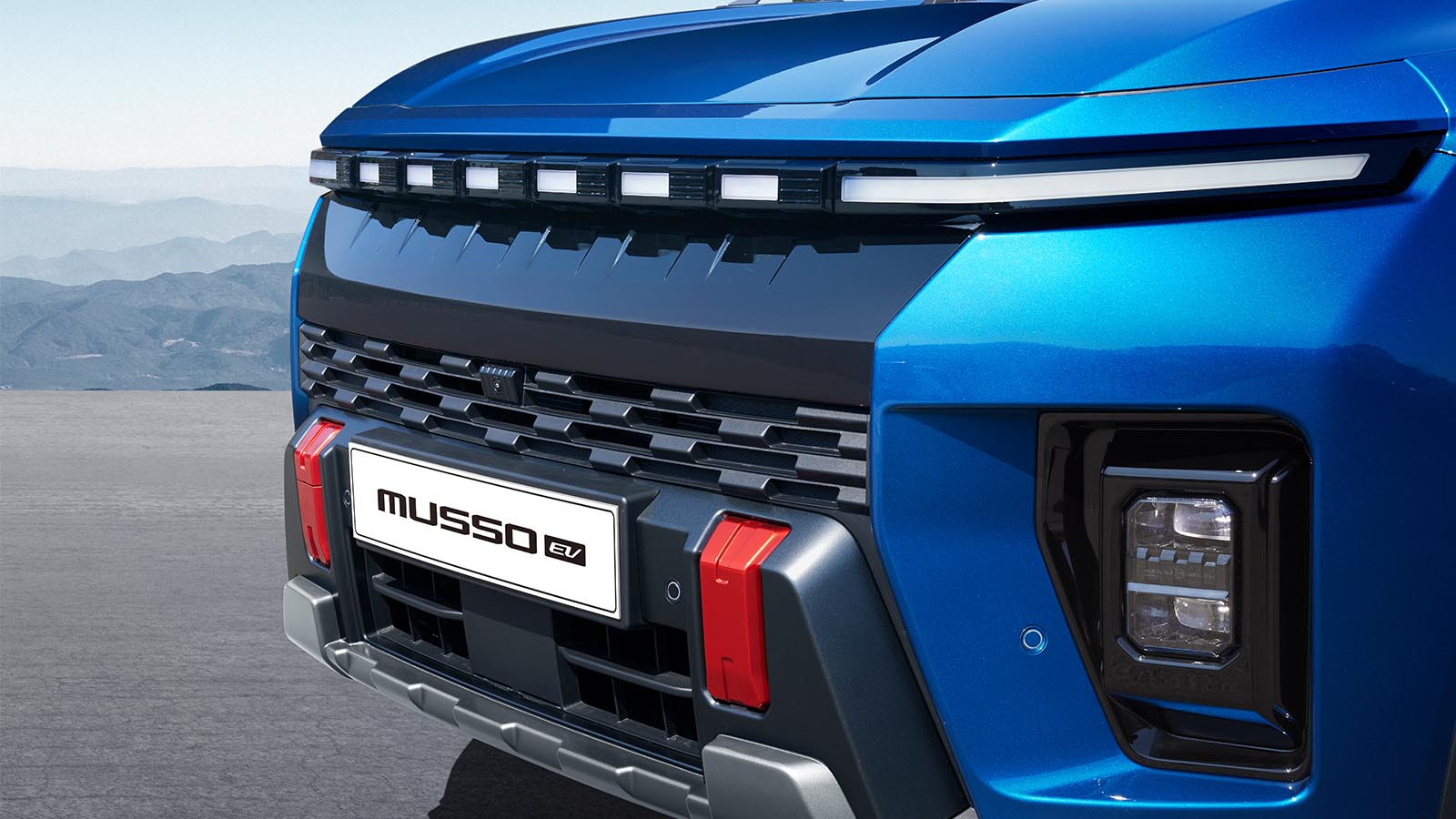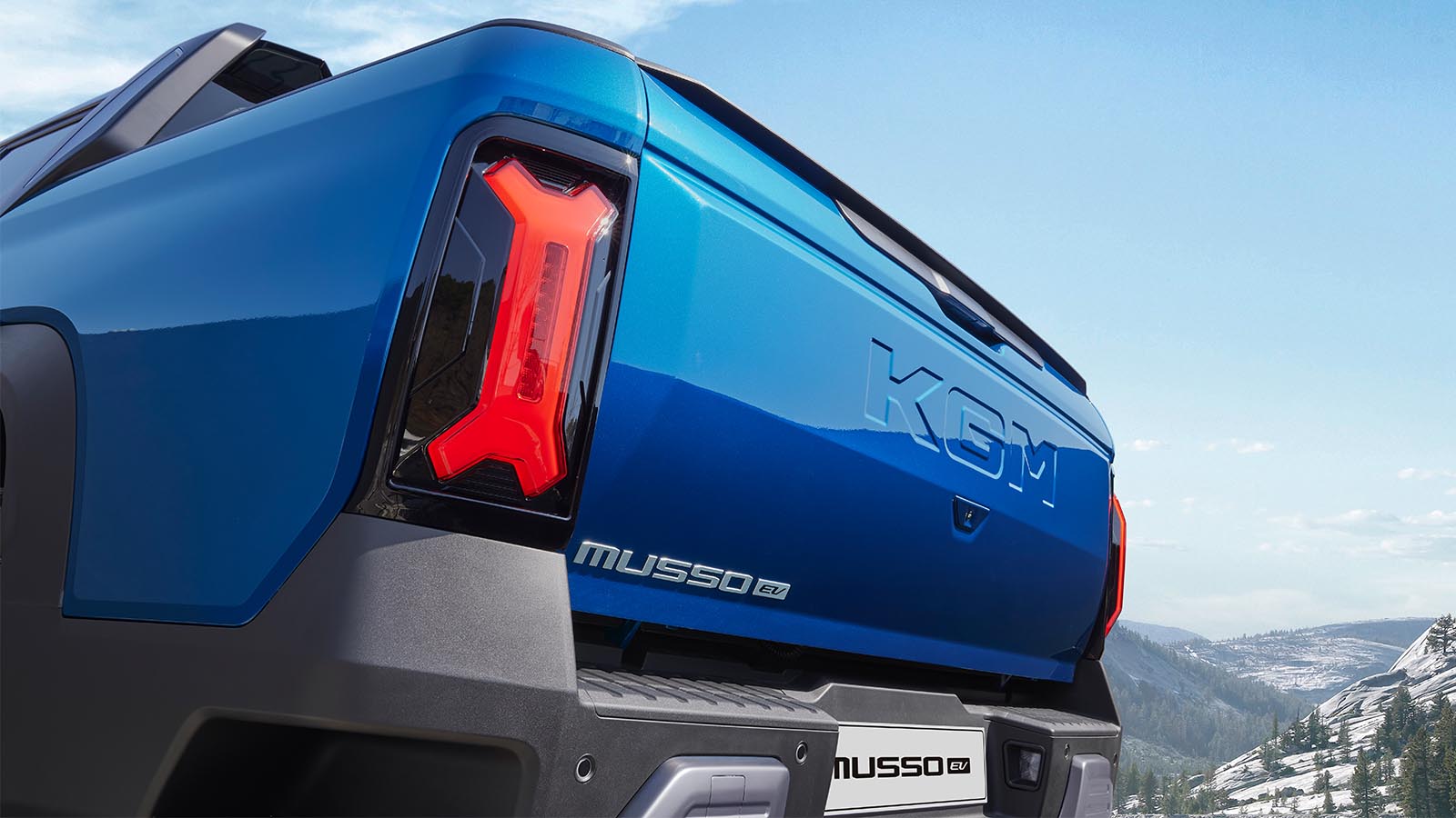 MUSSO EV:n käytännöllinen, mutta aikaa kestävä moderni ja rohkea muotoilu perustuu KGM:n Powered by Toughness -muotoilukieleen.