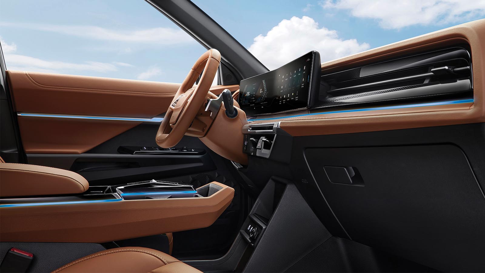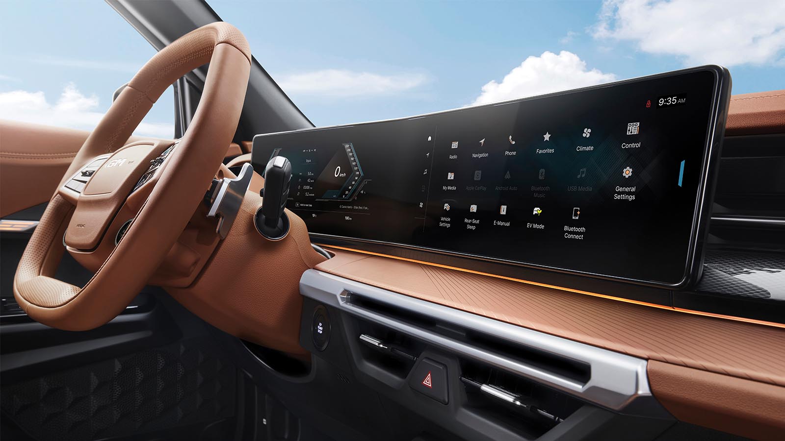 Integroitu panoraamanäyttö tarjoaa erinomaisen näkyvyyden ja helppokäyttöisyyden, mahdollistaa erilaisten ajoneuvotietojen vaivattoman hallinnan ja saumattoman tietoviihdekokemuksen nauttimisen.