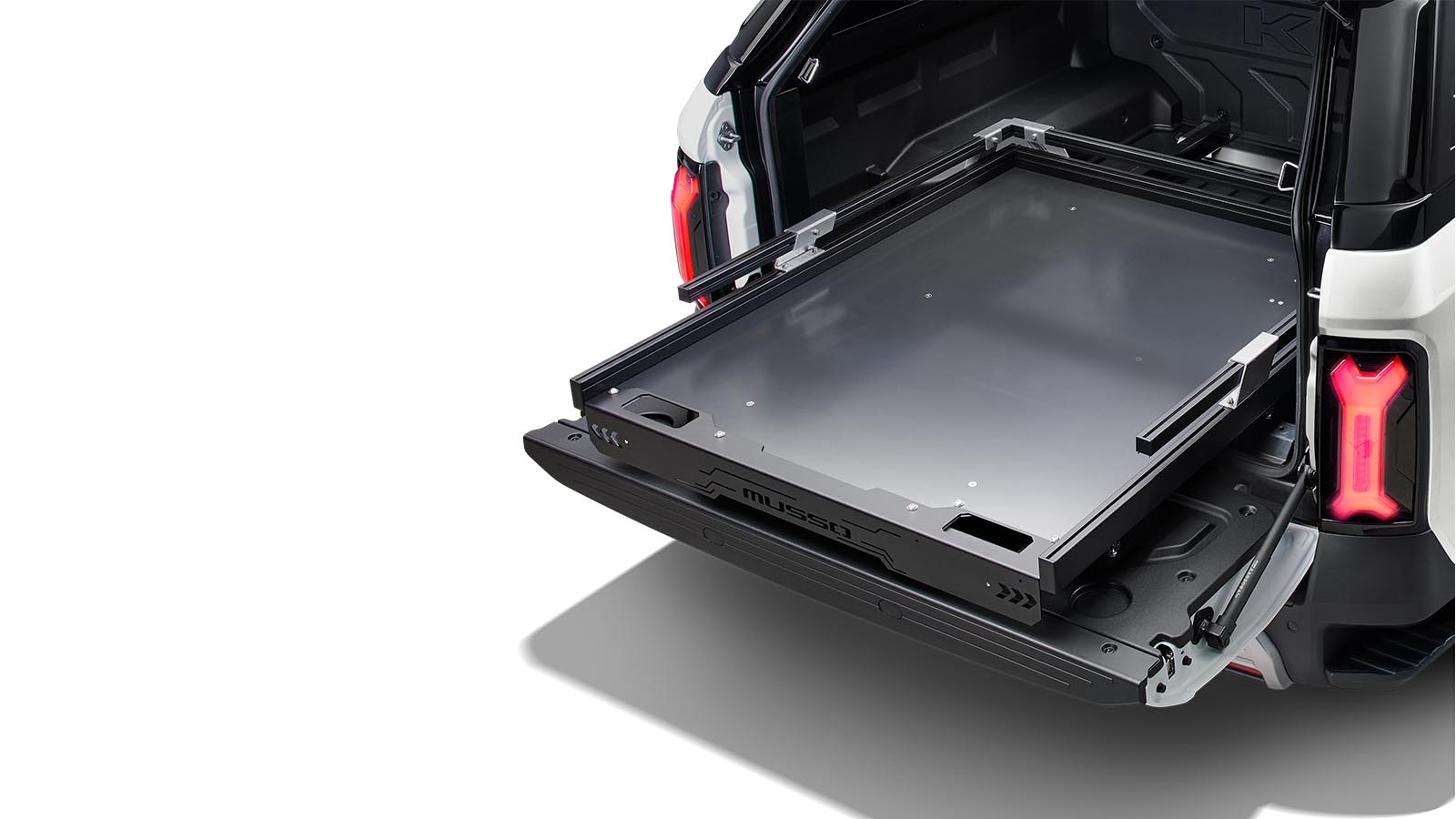 MUSSO EV on täydellinen työkalu elämäntyylisi laajentamiseen. Olitpa sitten arjessa tai luonnossa, se tarjoaa monipuolisuutta ja vapautta nauttia joka hetkestä. Tilavalla lavalla kuljetat tavaraa jopa 500 kg:n painosta. 8 kiinnityslenkkiä helpottava tavaroiden kiinnityksessä. Lavan mitat ovat 1515x1345x510 mm (leveys x pituus x korkeus). Helppokäyttöinen valo lavalla helpottaa pimeällä toimimista. Takaluukun hidastimet estävät alasrämähtämisen.