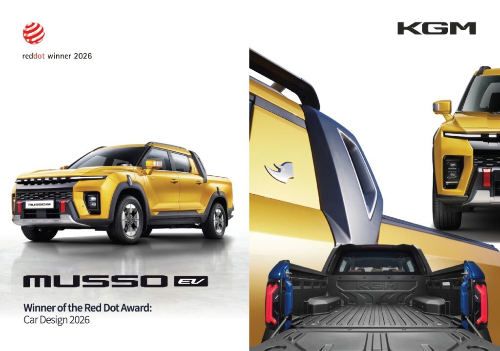 KGM:n sähköinen pick-up Musso EV on voittanut Red Dot Design Award 2026 ‑kilpailussa Winner-palkinnon tuotemuotoilun kategoriassa. Red Dot kuuluu maailman kolmeen arvostetuimpaan muotoilupalkintoon, ja tunnustus vahvistaa KGM:n asemaa kansainvälisesti kilpailukykyisenä muotoilijana.